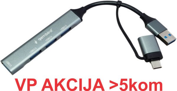 UHB-U3P4-06 ** Gembird HUB Type-A+C to 3*USB2.0 + 1*USB3.0 Aluminum (287)