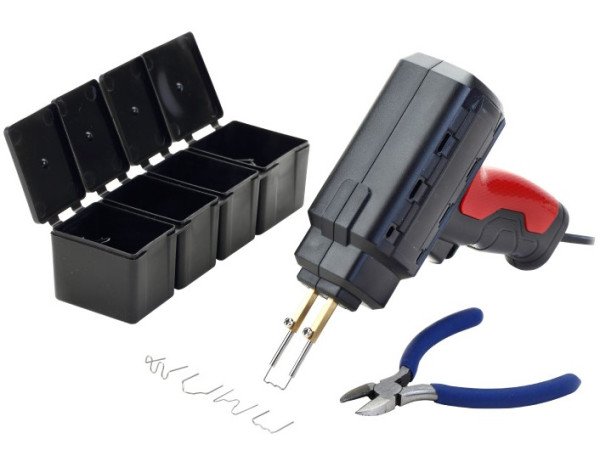 Uz ovu lemilicu se koriste metalne spajalice koje se utope u plastiku i služe za ostvarivanje čvrste veze između dva plastična dela