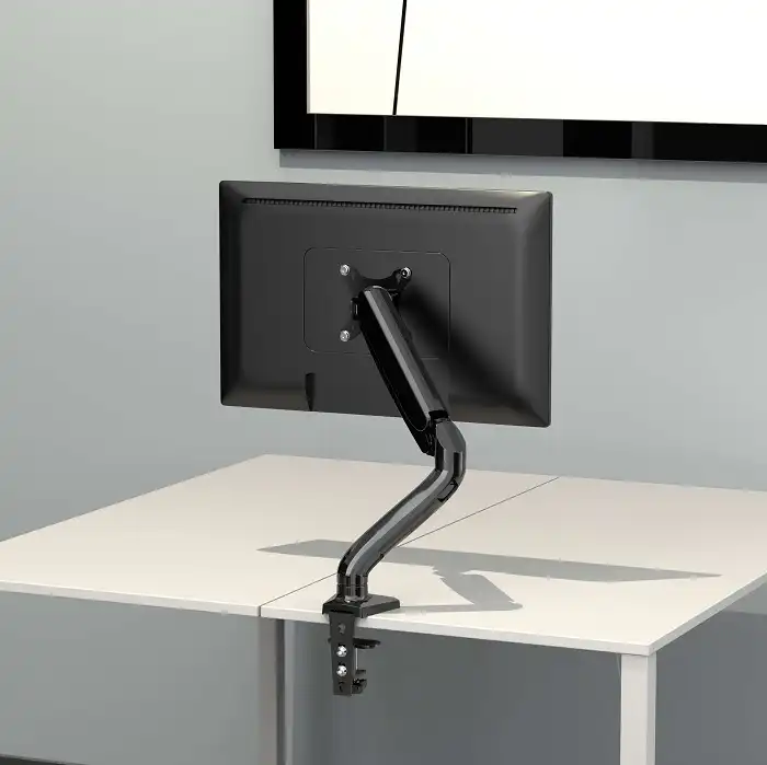 Materijal SPCC + aluminijum Površinska obrada Plastifikacija Nagib +60° -45° Zakrivljenje 180° Rotacija 360° Nosivost 29 kg Montažni profil 540 mm Pogodno za Ekrane od 10 do 32 VESA 75×75 100×100 mm Debljina radnog stola 80 mm Podešavanje visine 110-430 mm