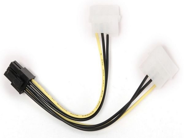 Adapter cable with 1 x 5.25″ Power female to 1 x 5.25″ Power male and 6 Pin PCI express connector for video cards