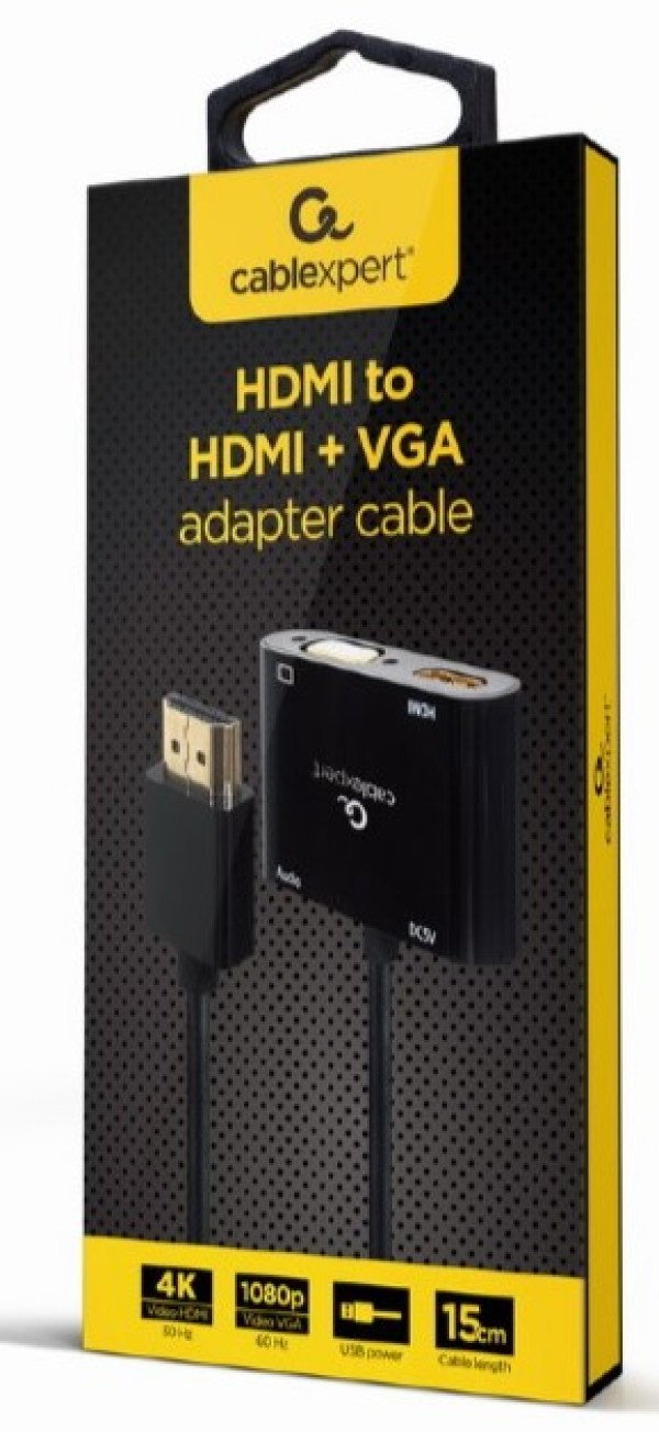 A-HDMIM-HDMIFVGAF-01 * Gembird HDMI male to HDMI female + VGA female + audio adapter cable, black