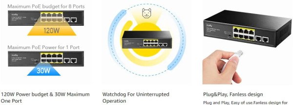 120V PoE izlazna snaga u potpunosti, do 32V za jedan PoE port