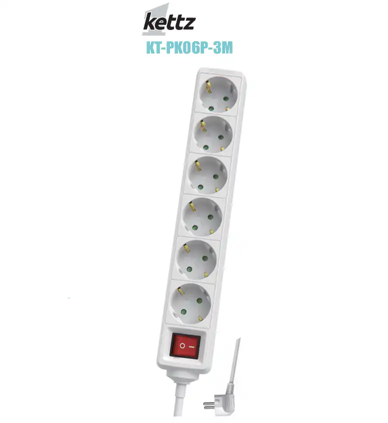 Produžni kabl KETTZ KT-PK06P-3M Produžni kabl šuko sa 6 rupe sa zaštitom za decu sa prekidačem Tip kabla H05VV-F 3G1.5MM2 Dužina kabla 3 M Snaga Max. 3500w – 230V