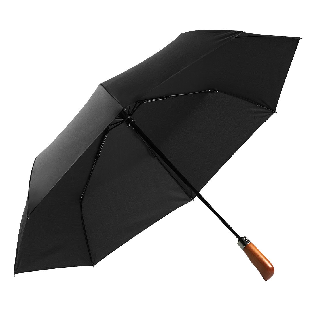 Sklopivi kišobran sa automatskim otvaranjem i zatvaranjem • Vetrootporni kišobran • 23" kišobran • 8 rebara • Materijal: 190T pongee • Trodeleni metalni štap • Drvena drška • Metalni završeci rebra • Navlaka od istog materijala • Poslovni stil • Pogodno za brendiranje