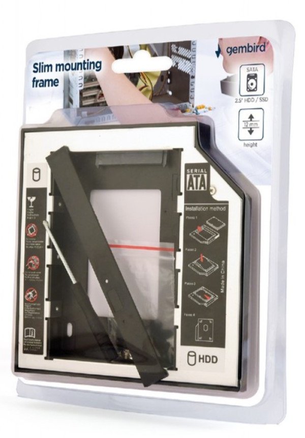 Ovaj praktični tanak ram može da se instalira u slobodnom SATA slotu 5,25″(optika kod laptopa). Možete ga instalirati umesto DVD-ROM drajva. Ovo vam omogućava da koristite dodatni 2.5″ SATA HDD na računaru.