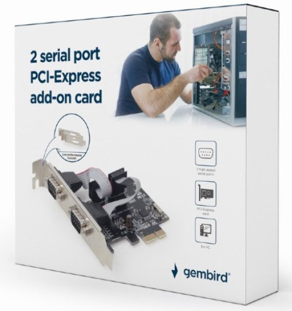 Pruža 2 brza serijska porta na bilo koji računar sa najmanje jednim slobodnim PCI-Ekpress slotom