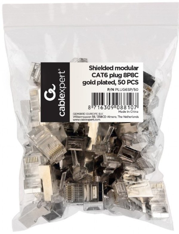 PLUG6SP/50 Gembird Shielded modular CAT6 FTP konektor, 50 u pakovanju RJ45 / CENA PO PAKOVANJU