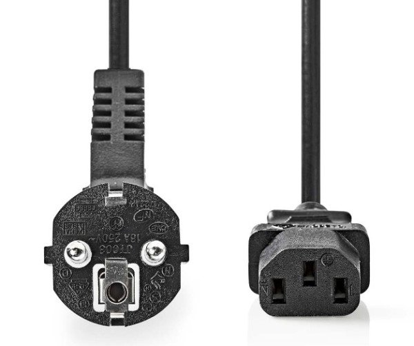 Utikač sa uzemljenjem muški | IEC-320-C13 | Ugaoni | Pravi | Niklovani | 5,00 m | Okrugli | PVC | Crni | Oznaka