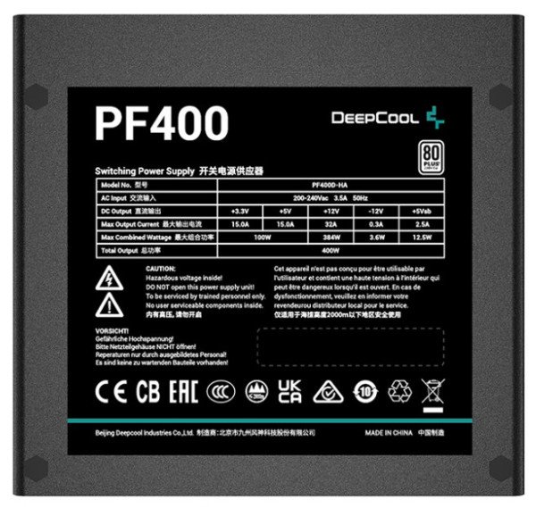 PF400 Jedinica za napajanje DeepCool PF serije nudi sigurne i stabilne performanse napajanja uz pouzdanu efikasnost 80 PLUS Standard i pristupačne cene.