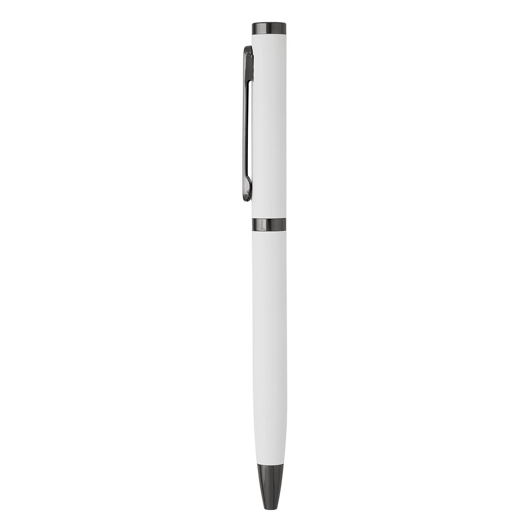 Hemijska olovka u setu AMBASADOR je luksuzan promotivni model izrađen od mesinga, namenjen premium poslovnim poklonima i reprezentativnom brendiranju. Soft touch telo sa hromiranom podlogom gornjeg dela pruža izuzetno prijatan osećaj pri držanju i sofisticiran vizuelni efekat, dok twist mehanizam omogućava jednostavno i pouzdano korišćenje. TC kuglica debljine 0,7 mm obezbeđuje glatko i precizno pisanje uz plavo mastilo koje zadovoljava standardne kancelarijske i poslovne potrebe. Sjajni tamno-metalni detalji dodatno naglašavaju elegantan karakter modela, a papirna navlaka kao dodatak za pakovanje čini ovaj proizvod praktičnim i spremnim za urednu prezentaciju.