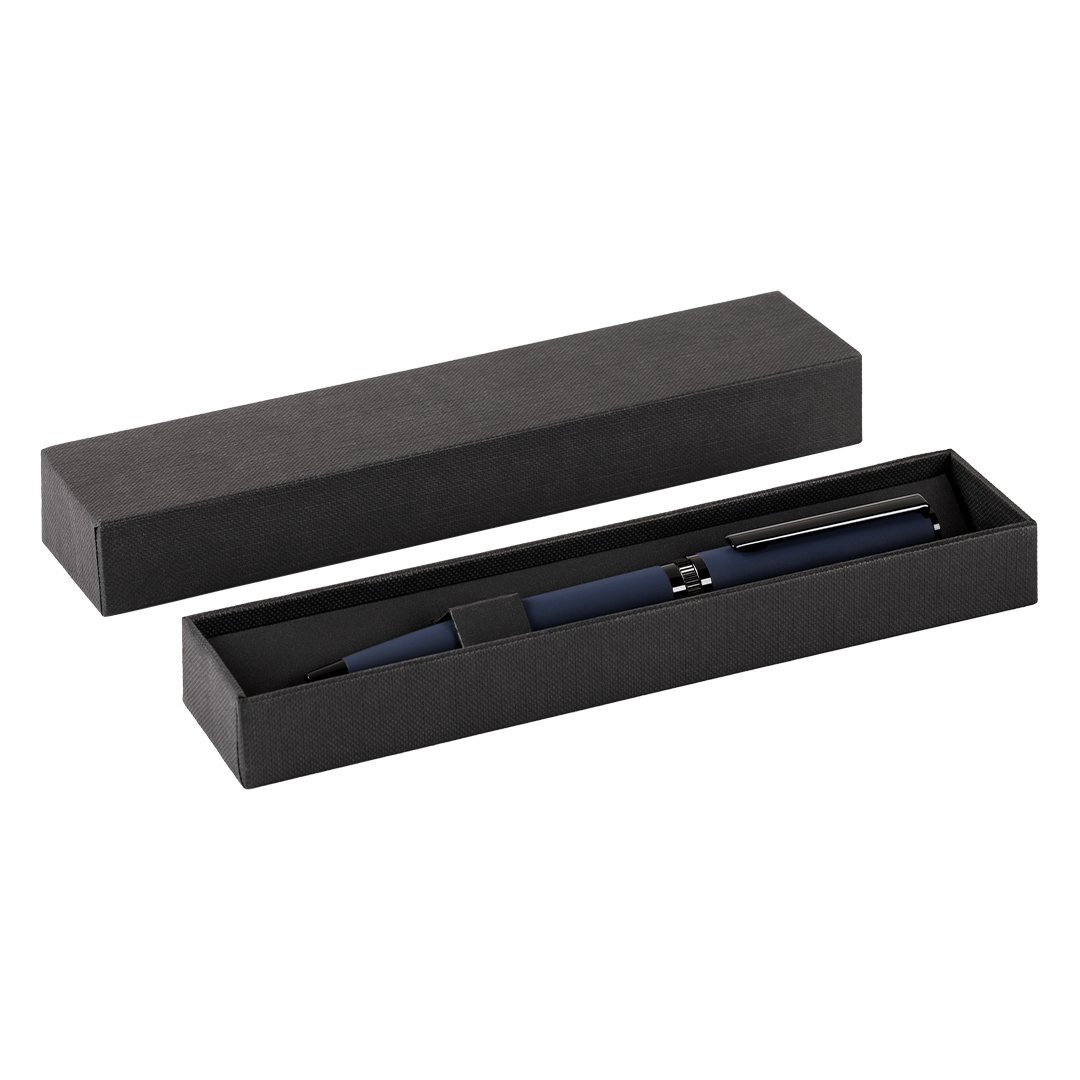 Hemijska olovka u setu • Materijal: mesing • Twist mehanizam • TC kuglica 0,7 mm • Plavo mastilo • Soft touch telo sa hromiranom podlogom gornjeg dela • Crni sjajni delovi • Luksuzna poklon kutija • Idealna za premium poslovne poklone