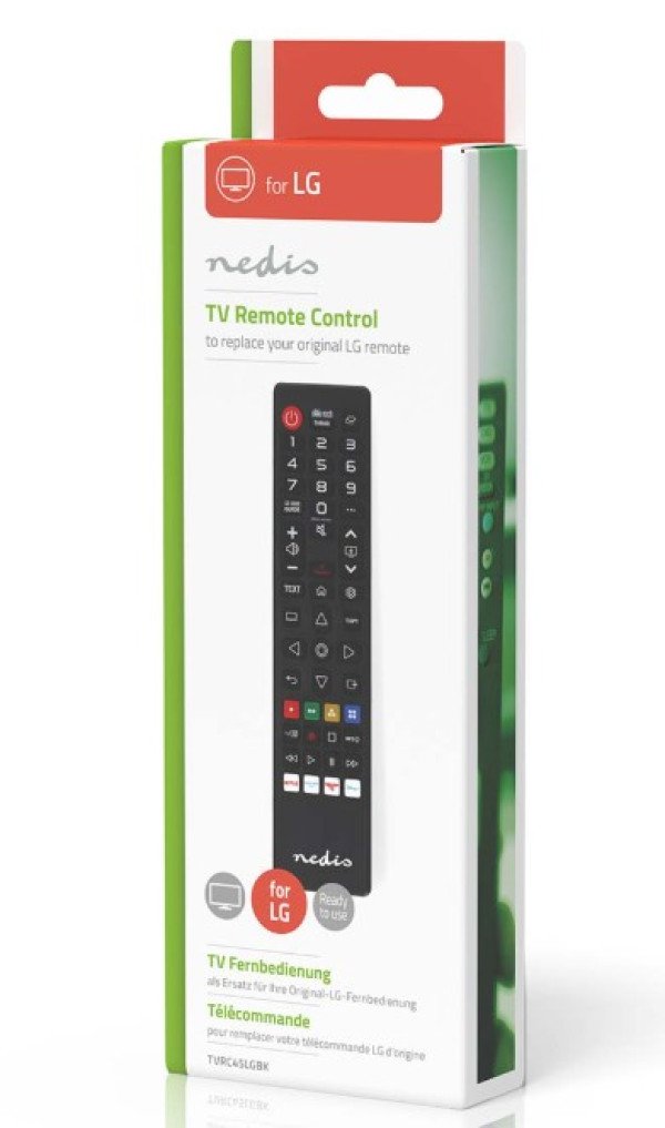Zamenite izgubljeni ili pokvareni LG daljinski upravljač ovim unapred programiranim Nedis daljinskim upravljačem za zamenu televizora, koji je kompatibilan sa svakim LG televizorom. Zahvaljujuci opsežnoj ugrađenoj bazi podataka kodova, sadrži svaku funkciju originalne verzije. Nedis daljinski upravljač za zamenu je jednostavan za upotrebu jer ne zahteva nikakvo programiranje. Jednostavno umetnite baterije i spremni ste.