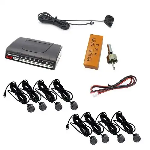 Opis proizvoda Naziv artikla PS-330 sistem senzora za parkiranje automobila sa 8 senzora Materijal plastika Boja crna Ulazni napon 9V 15V DC Nazivni napon 12V DC Struja brzine 20mA200mA Potrošnja energije Max. 0.5W Udaljenost odgovora 0.32.0m0.986.56ft. Udaljenost alarma 02m06.56ft. Režim prikaza bez ekrana Prečnik senzora 22 mm Režim instalacije bušenje Ugao senzora XY60°C Radna temperatura domac´ina -30°C +80°C Radna temperatura ekrana -20°C +70°C Tip alarma zujalica Bi-Bi… Jačina alarma 65dB Frekvencija alarma 00.4m Bi—— 0.6-1.0m 3Hzbrzo 1.1-1.5m 1Hzsporo 1.62m 0.5Hzsporo Vodootporan i protiv smrzavanja. Lako se instalira. Alarm sa BiBi zvukom u 3 koraka Indikacija leve i desne prepreke 1 x Glavna jedinica 1 x Displej 8 x Senzor sa kablom 1 x Bušilica 1 x kabl za napajanje 1 x traka