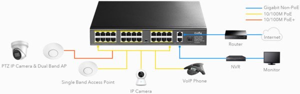 Podržava ukupnu PoE snagu od 300 W i do 30 W za jedan PoE port. Nestandardni PoE uređaji ili normalni PoE prekidači se ne spaljuju. Zadovoljava IEEE802.3af / po standardu.