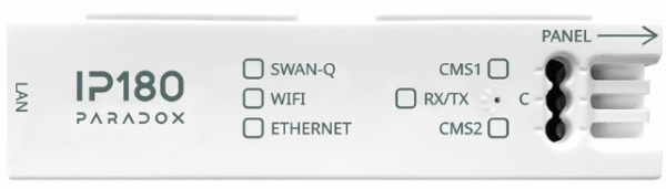 koristi se za izveštavanje i daljinsko povezivanje sa Paradox sistemima putem interneta. Izvještavanje CMS-u centralne stanice moguće je putem Paradox IPC10 prijemnika/konvertera. IP180 se daljinski povezuje sa sistemom pomoću aplikacije BlueEye, PC softvera i omogućava daljinsku nadogradnju sistema. Može se povezati s Ethernet kablom ili preko Wi-Fi-ja ili oboje sa fail over-om. IP180 se može daljinski nadograditi,može slati sistemske događaje putem e-pošte.