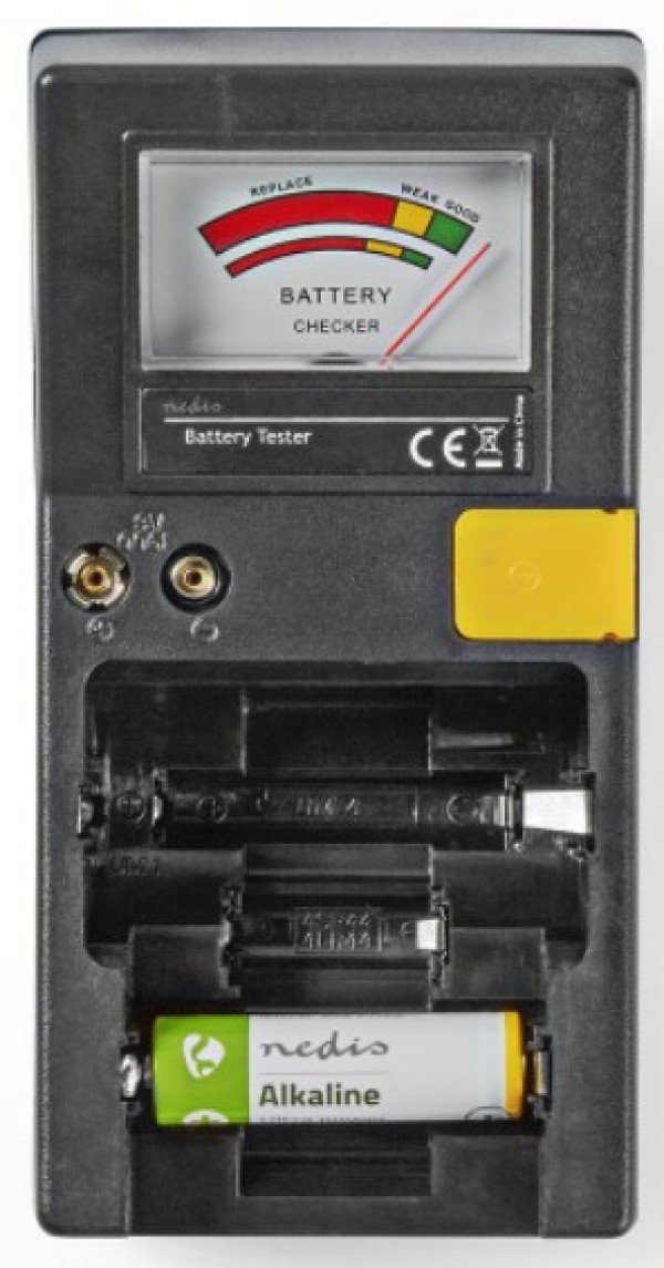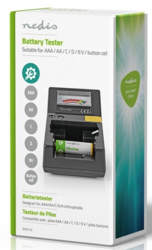 Testirajte preostali nivo energije AAA, AA, C, D, 9 V i dugmastih baterija pomoc´u ovog prakticnog, kompaktnog testera baterija.