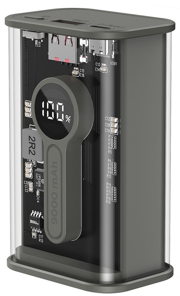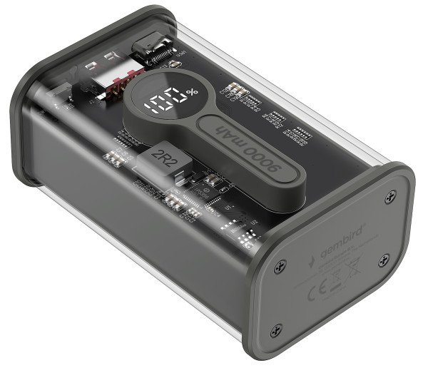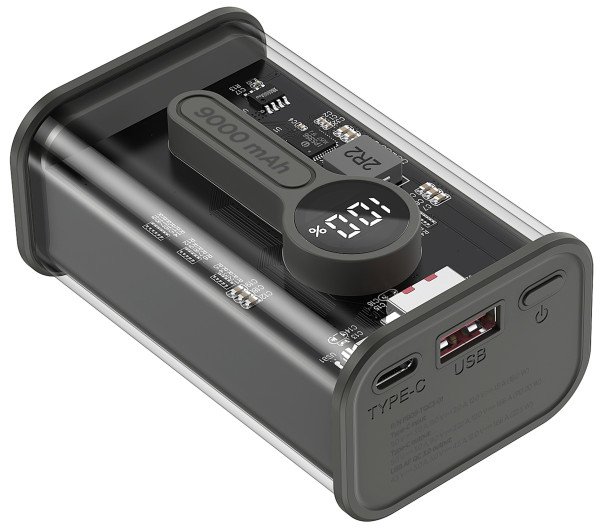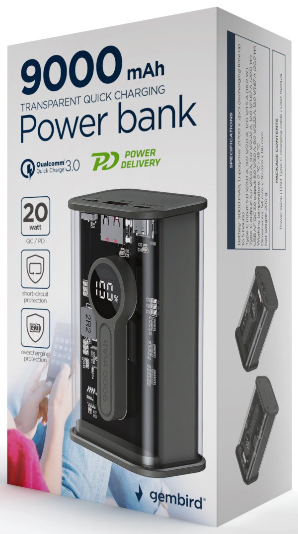 Transparentna baterija za brzo punjenje QC3.0, 9000 mAh, crna