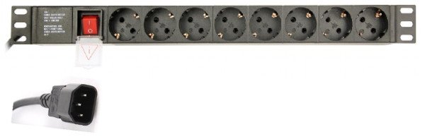 EG-PDU-014-C14 Gembird C14 Produzni kabl sa zastitom 8 uticnica 10A, PDU 1U, aluminium, 3m