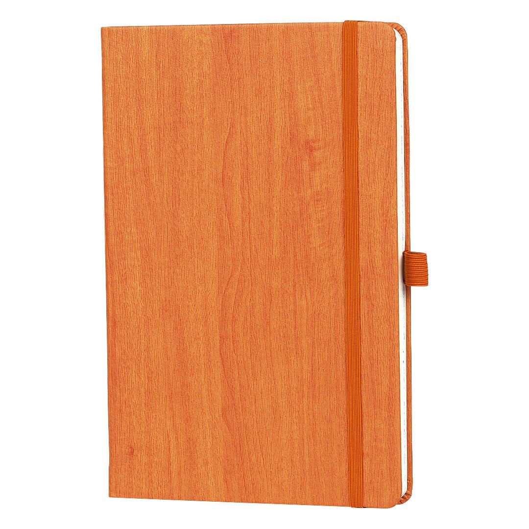 Notes formata A5 sa zaobljenim ivicama, namenjen poslovnoj i promotivnoj upotrebi. Opremljen je elastičnom trakom i držačem za olovku, dok Korica od skaja sa teksturom drveta daje notesa prepoznatljiv i prirodan vizuelni efekat. Knjižni blok u linije sa 192 strane krem papira gramature 80 g/m² omogućava uredno i prijatno pisanje. Proizveden u Evropi.