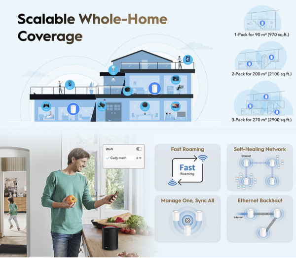 Mesh WiFi 6 sistem sa pet antena koji obezbeduje izuzetno brzu mrežu za velike kuce sa zahtevima za 4K striming i gejming. Pogodan za internet konekcije do 2,5 Gbps.