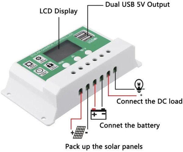 1. Ovaj kontroler je 12V/24V samoprilagodljivi regulator solarne energije. To je kontroler solarne energije sa litijumskom baterijom bez trenutnog prikaza.