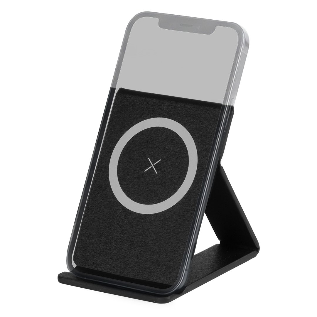 Sklopivi držač za telefon sa integrisanim bežičnim punjačem i magnetom, namenjen praktičnoj upotrebi na radnom stolu ili u pokretu. Omogućava bežično punjenje mobilnih uređaja snage do 15W i kompatibilan je sa svim uređajima koji podržavaju Qi tehnologiju.