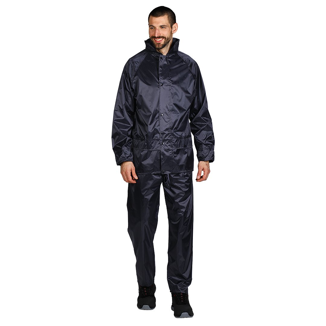 Jakna ima centralno zatvaranje i povišenu kragnu koja dodatno štiti vratnu zonu od prodora kiše i hladnog vazduha. Konstrukcija je prilagođena nošenju preko radne odeće. Pantalone su izrađene od istog materijala, sa krojem koji omogućava slobodu kretanja i lako oblačenje preko druge odeće i obuće. Set je pogodan za građevinu, komunalne i infrastrukturne delatnosti, logistiku, saobraćaj, poljoprivredu i sve poslove na otvorenom gde su zaštita od padavina i vetra osnovni zahtevi.