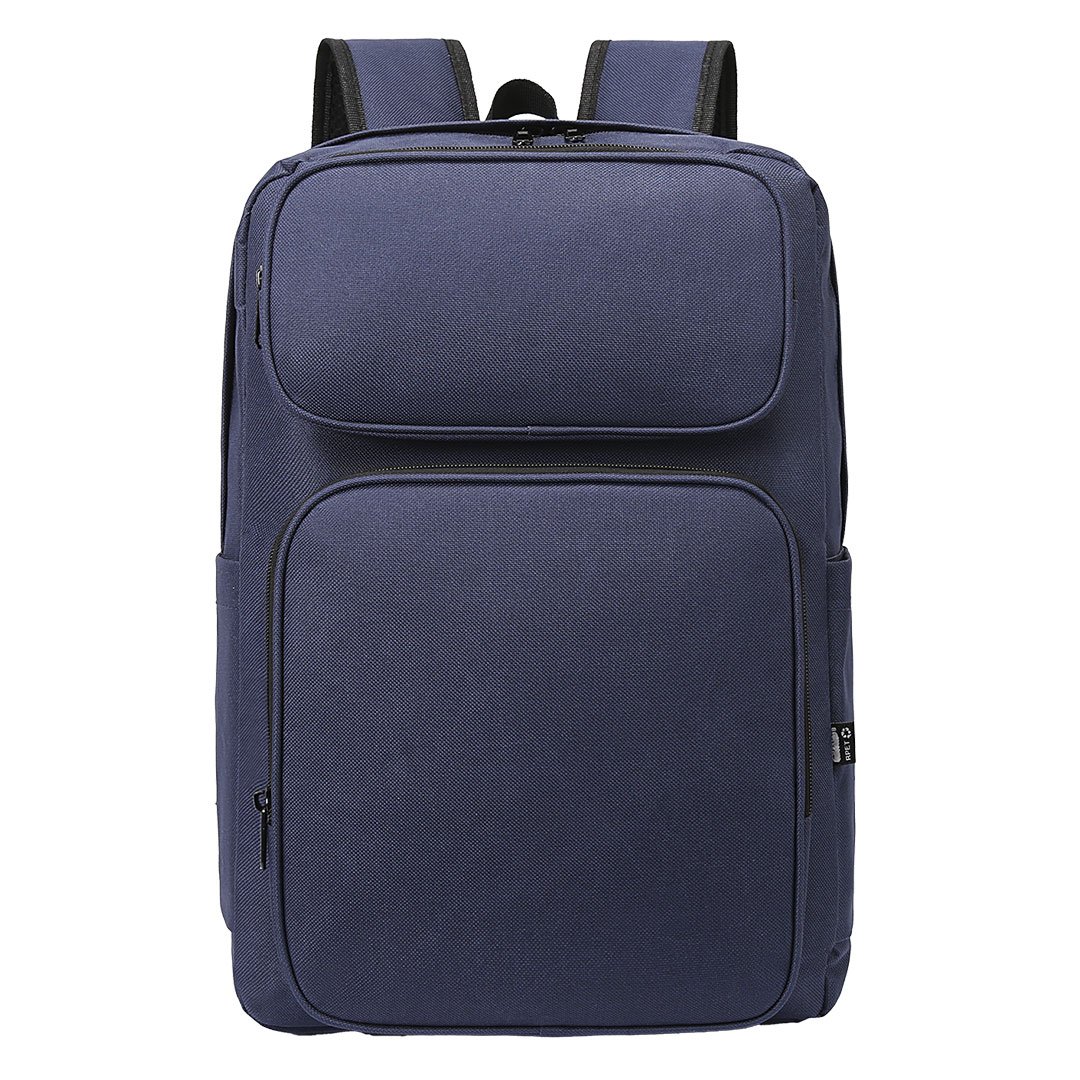 Ranac od recikliranog poliestera • Jedan glavni odeljak • Dva prednja džepa sa rajsferšlusom • Bočni džepovi • Odeljak za laptop 15" • Odeljak za tablet 8" • Ojačana postava na leđima • Cenovno ekonomičan model • Pogodno za brendiranje