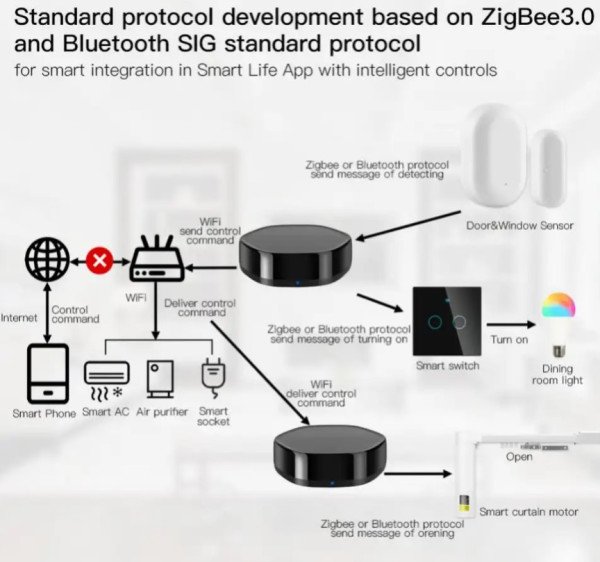 Model: ZIGBEE-GATEWAY-GW008 Gembird Tuya Zigbee Smart Gateway hub 3 In 1 Multimodal IR Remote Controller Voice Control Compatible with Alexa Google