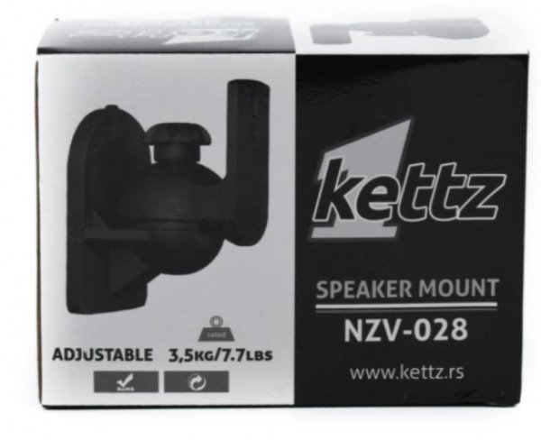 NZV-028 je idealni nosac zvucnika za satelitske zvucnike težine do 3.5kg / 7.7lbs, postavljajuc´i se na jedan navoj ili jedan od dvostrukih navoja zvucnika. To je jednostavno i brzo instalaciono rešenje sa dizajnom na zidnu plocu. Konstruktivna struktura u obliku luka omoguc´ava naginjanje 20 ° nagore i nadole, 70 ° levo ili desno da bi pružila idealne uslove zvuka. Dugme za podešavanje nudi jednostavan nacin za nošenje zvucnika da isporuci željene uslove zvuka. Postavljaju se na zvucnike 64mm iz zida kada se potpuno istegne.
