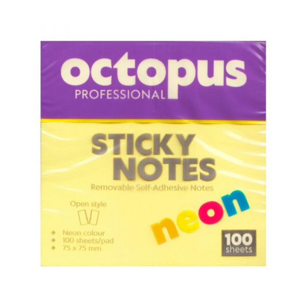 Samolepljivi blokčići 75×75 Octopus neon žuti UNL-2042 100lista