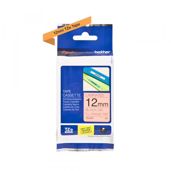 TZe-B31 crna na narandžasto fluo 12mm