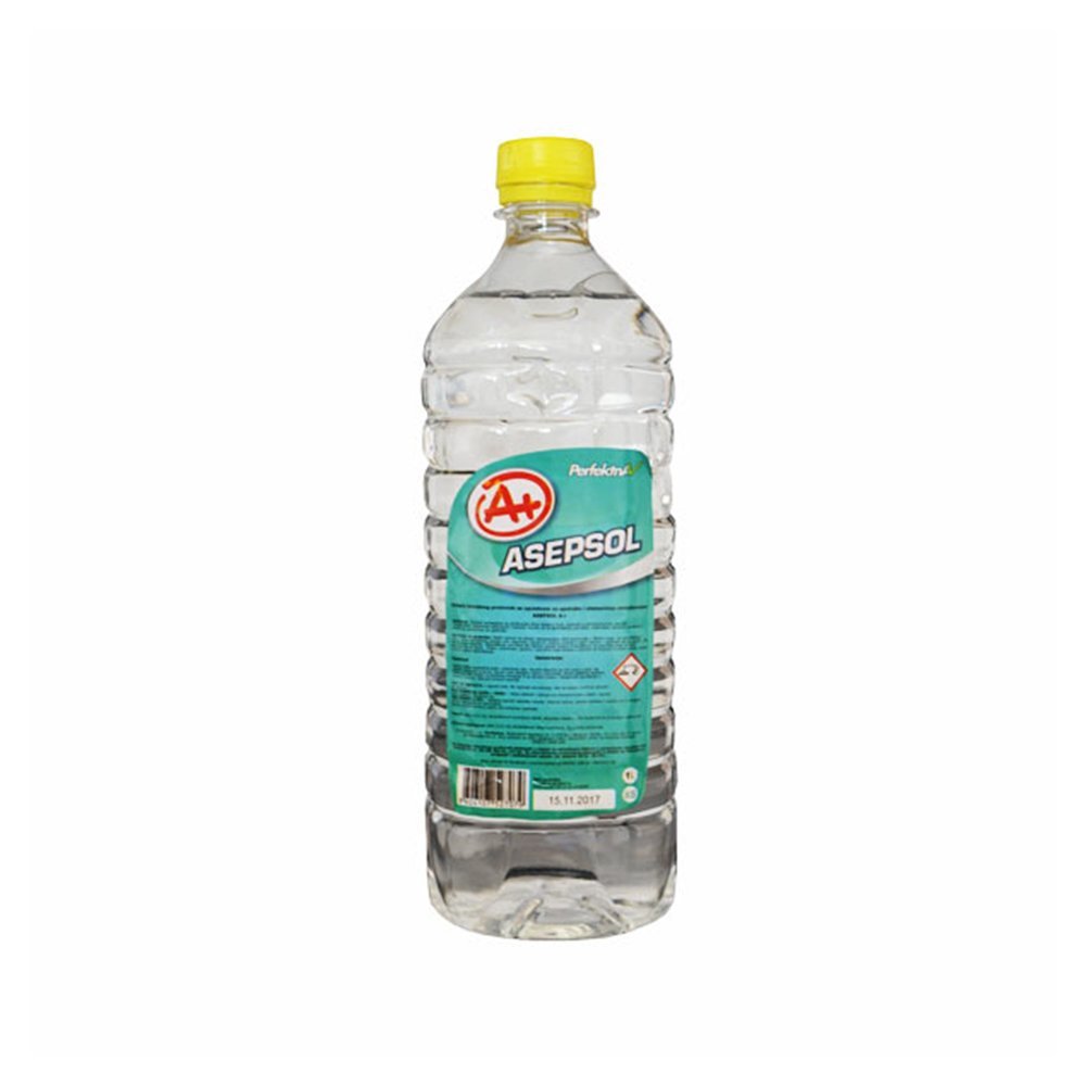 Asepsol 1%Sadrži : 1 g aktivne supstance alkil ( C12-16) dimetil benzil amonijum hlorid u 100g proizvoda .Pogodan je za opštu i medicinsku primenu.Koristi se u zdravstvu, javnim ustanovama, kanclarijskom prostoru, domaćinstvu, sredstvima za javni i lični prevoz, hotelijerstvu i ugostiteljstvu.Svojim delovanjem na različitim površinama, predmetima i materijalima uništava mikroorganizme, uklanja masnoće i mirise.Upozorenje: NE SME se upotrebljavati za ispiranje usta , nosa i očiju.