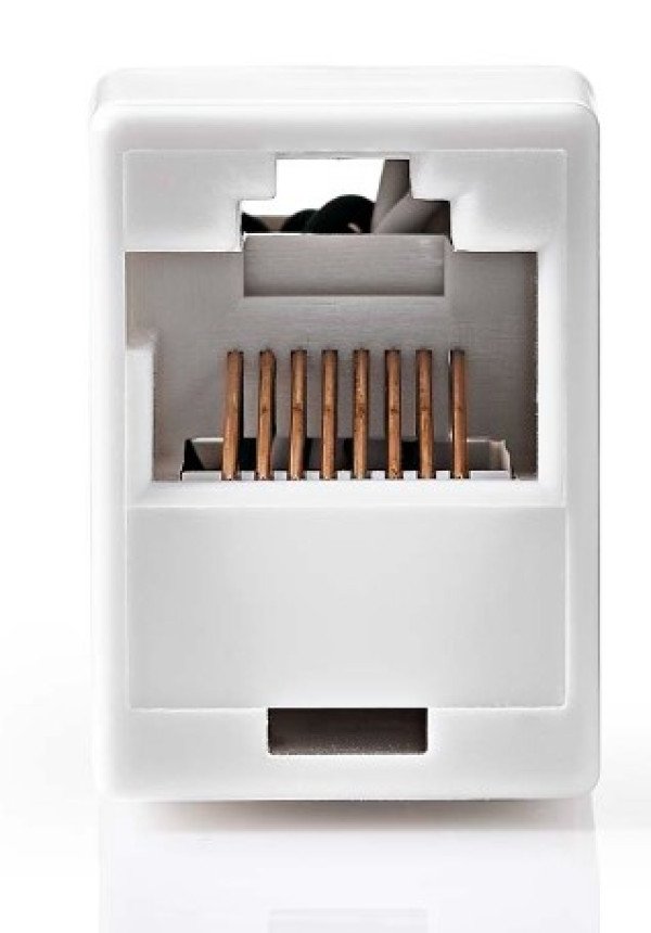 Ovaj RJ45 spojnik se moze koristiti za povezivanje dva UTP CAT5 kabla jedan sa drugim.