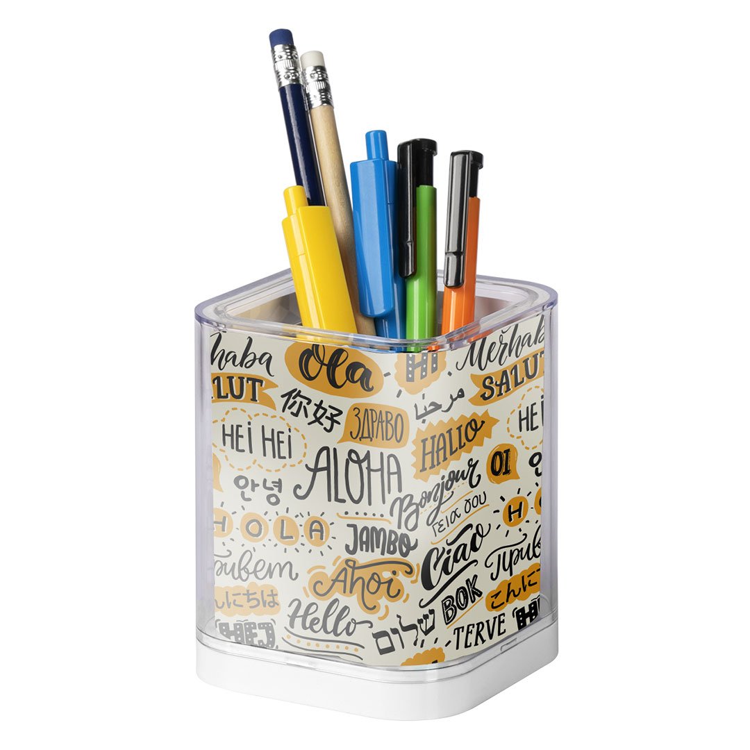 Držač za olovke i sitne kancelarijske stvari izrađen od izdržljive plastike, namenjen organizaciji radnog prostora u kancelariji, kod kuće ili u školi. Kompaktan format omogućava da olovke, markeri i ostali pribor budu pregledno posloženi i lako dostupni. Proizvod dolazi u PVC kutiji, pogodan i kao praktičan promotivni dodatak.