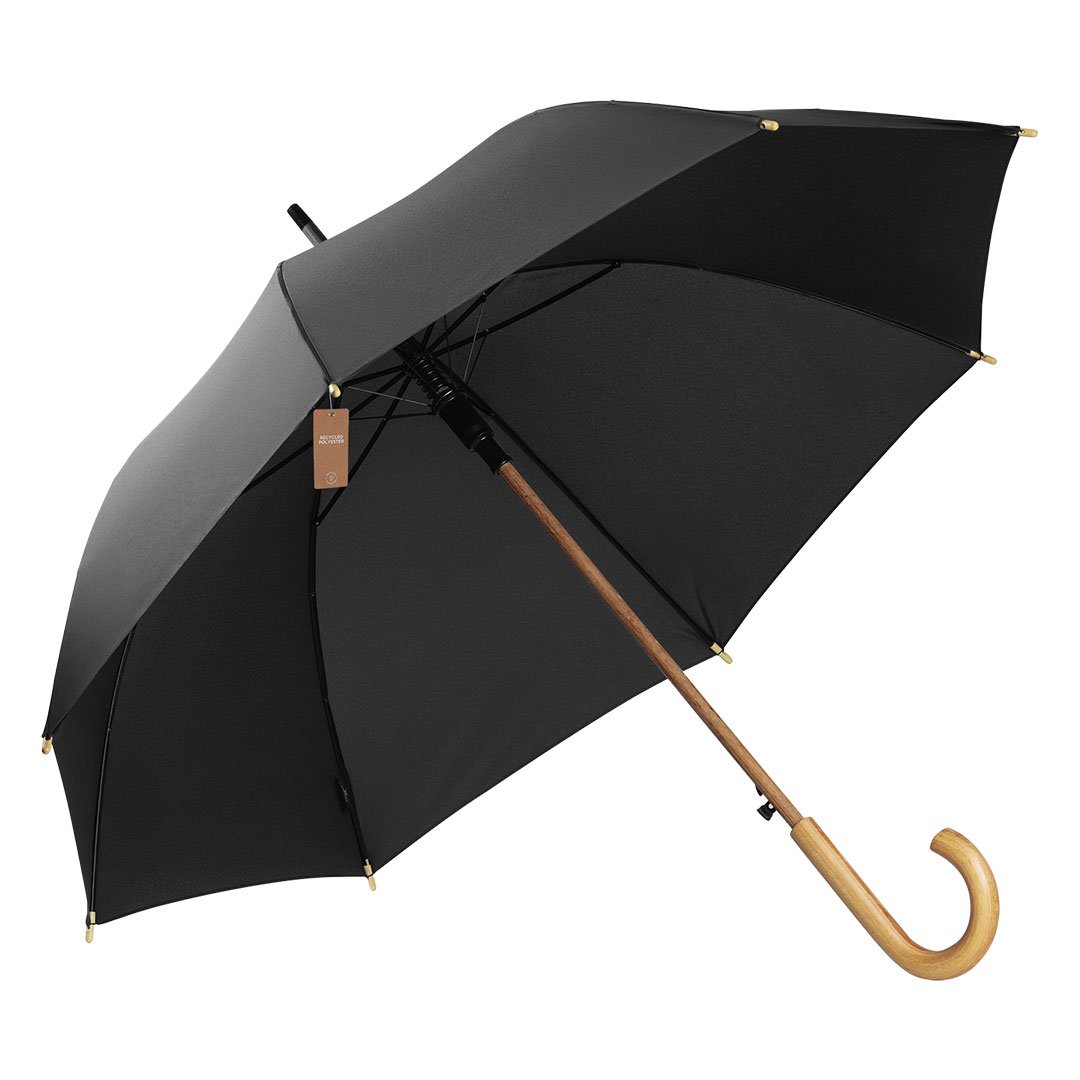 Kišobran sa automatskim otvaranjem predstavlja pouzdan i praktičan promotivni proizvod, namenjen svakodnevnoj upotrebi i masovnim marketinškim kampanjama, sada u ekološki odgovornoj varijanti. Izrađen je od RPET 190T pongee materijala, dok prirodna drvena drška i drveni štap daju klasičan i prepoznatljiv izgled. Konstrukcija sa rebrima od stakloplastike (FRP) obezbeđuje dobru otpornost na vetar i dugotrajnu upotrebu. Zahvaljujući povoljnom odnosu cene, kvaliteta i održivih materijala, ovaj model je čest izbor kao poslovni poklon pogodan za brendiranje.