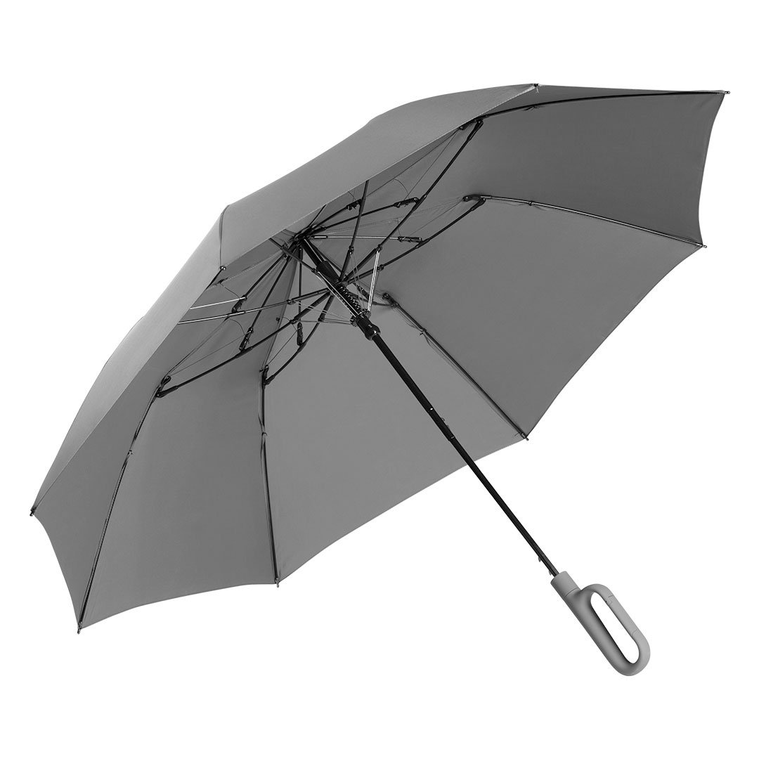 Sklopivi kišobran sa automatskim otvaranjem • Vetrootporni kišobran • 23" kišobran • 8 rebara • Materijal: 300T pongee • Dvodelni metalni štap (čelik) • Ram od stakloplastike • Vodoodbojni materijal (nivo 5) • Soft touch drška sa karabinjerom • Navlaka od istog materijala • Pogodno za brendiranje