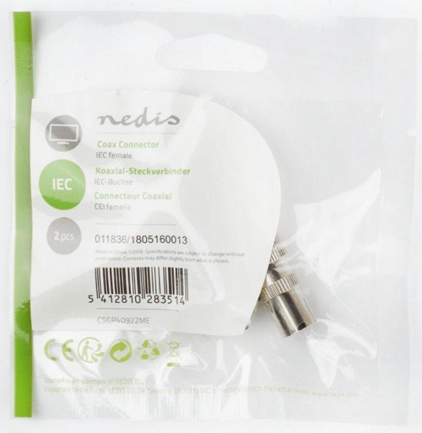 CSGP40922ME IEC zenski konektor, Nickel Plated, 75ohm, 7mm (pakovanje 2kom)