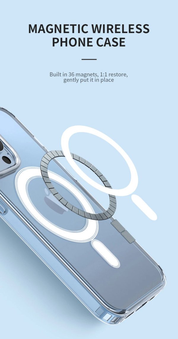 Tanka futrola sa ugradjenim magnetima. Sa ovom futrolom mozete prisloniti vas telefon na bilo koji MagSafe bezicni punjac/drzac.