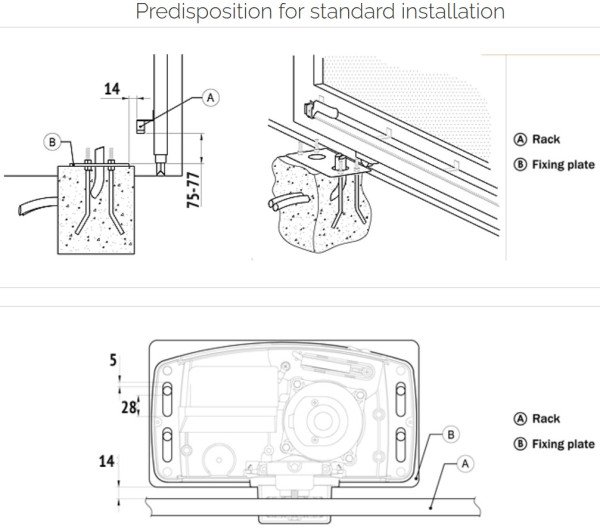 Motor klizne kapije sa ugrađenom kontrolnom jedinicom H70 i mehaničkim ograničivačem.
