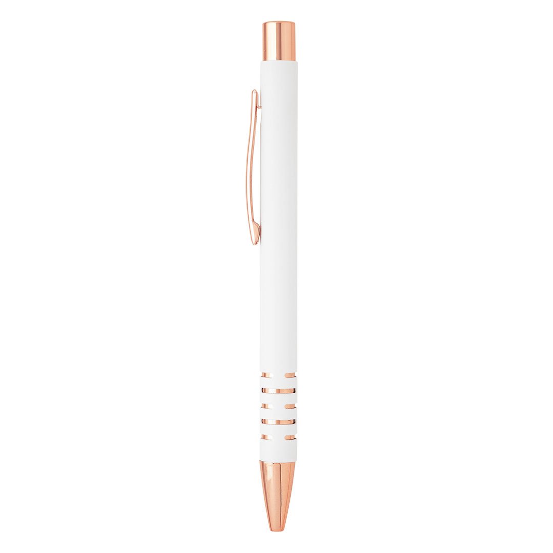 Hemijska olovka • Materijal: aluminijum • Soft touch telo • TC kuglica 0,7 mm • Plavo mastilo • Mat završna obrada • Sjajni detalji u boji ružičastog zlata • Široka paleta boja • Idealna za poslovnu i promotivnu upotrebu