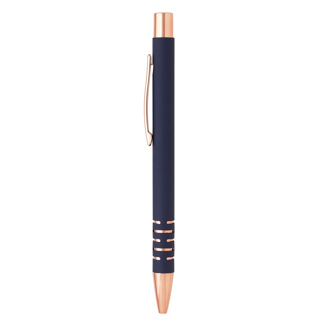 Hemijska olovka • Materijal: aluminijum • Soft touch telo • TC kuglica 0,7 mm • Plavo mastilo • Mat završna obrada • Sjajni detalji u boji ružičastog zlata • Široka paleta boja • Idealna za poslovnu i promotivnu upotrebu