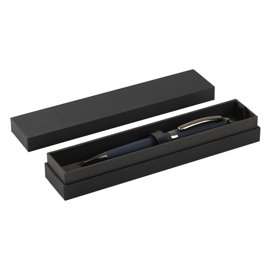Hemijska olovka u setu • Materijal: mesing • Twist mehanizam • TC kuglica 0,7 mm • Plavo mastilo • Soft touch telo sa hromiranom podlogom gornjeg dela • Sjajni tamno-metalni delovi • Luksuzna poklon kutija • Idealna za poslovne poklone i promotivnu upotrebu
