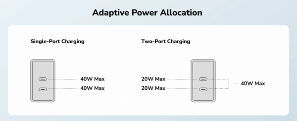 -USB-C1 + USB-C2: 20.0 W + 20.0 W