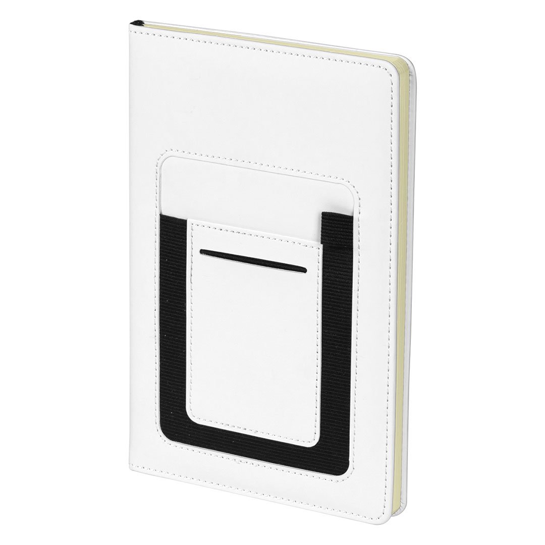 Notes • Format A5 • 160 strana • Knjižni blok u linije • Krem papir 70 g/m² • Zaobljene ivice • Držač za olovku • Džep za mobilni telefon • Džep za kartice • Džepovi na spoljašnjoj strani prednje korice