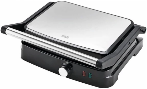 – Muhler MHT-2824 je 2-u-1 kontaktni grill s neprijanjajućim pločama dimenzija 28 x 23,5 cm, prilagodjen za jednostavno čišćenje. Nudi mogućnost otvaranja pod 180 stepeni, regulaciju temperature i ima dve signalne lampice za rad i zagrevanje. Dodatno je opremljen termostatom, posudom za višak masnoće, dekorativnom pločom od nerdjajućeg čelika.