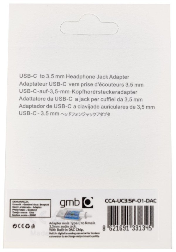 Adapter sa Type-C na 3.5mm audio, CCA-UC3,5F-01-DAC pogodan je za koriscenje bilo kojih univerzalnih slusalica, ukoliko originalne nisu dobijene prilikom kupovine ili prosto vise nisu u funkciji, a koje imaju konektor 3.5 mm za slusanje omiljene muzike na vasem android uredjaju, kao i za lakse vodjenje razgovora dok pritom imate slobodne ruke za obavljanje svakodnevnih multitasking zadataka.