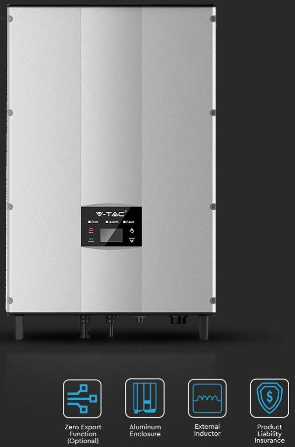 Pretvara elektricnu energiju proizvedenu iz solarnih panela iz jednosmerne u naizmenicnu i distribuira je preko trofaznog napajanja.