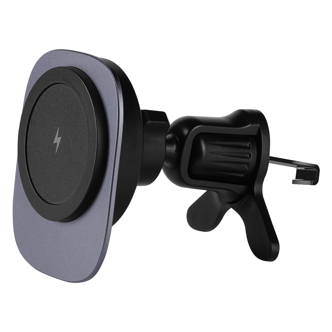 Magnetni držač i bežični punjač za mobilni telefon za automobil • Bežično punjenje do 15W • Izlazna snaga: 5W / 7.5W / 10W / 15W • Sistem kačenja na ventilacione otvore • Materijal: aluminijum i plastika • Type-C ulazni interfejs • Stabilno magnetsko pričvršćivanje telefona • Kabl za punjenje uključen • Pogodno za brendiranje • Poklon kutija