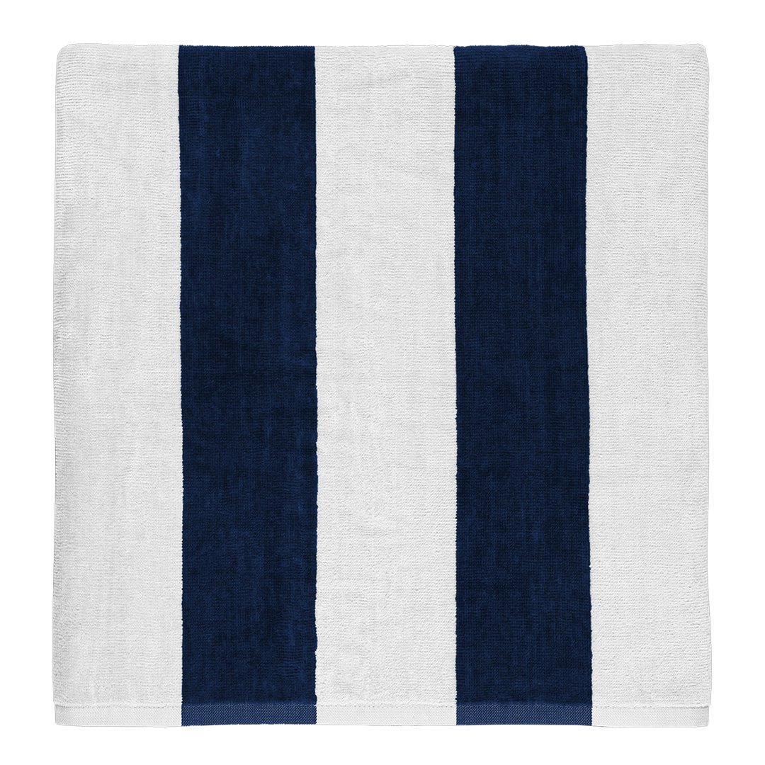 Peškir 75 × 150 cm • 100% pamuk • 380 g/m2 • Mekan i upijajući • Pogodan za vez • Dvobojni dizajn sa vertikalnim prugama • Idealan za plažu, spa i promo poklone